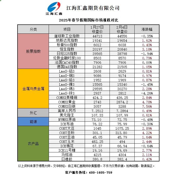 春節(jié)假期主要大類資產(chǎn)外盤漲跌變化