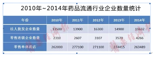 目前醫(yī)藥產(chǎn)業(yè)集中度提高與行業(yè)“多、小、散”產(chǎn)業(yè)格局并存。行業(yè)在通過一段時間的并購、重組過程之后,一定程度上提高了產(chǎn)業(yè)集中度,尤其是藥品流通企業(yè),前100位的藥品批發(fā)企業(yè)已占到64.28%的市場份額。從批發(fā)企業(yè)數(shù)量分析:2014年的法人批發(fā)企業(yè)數(shù)量與2012年相比,減少比率為28.63%,短短的三年的時間,超四分之一的藥品批發(fā)企業(yè)消失了。